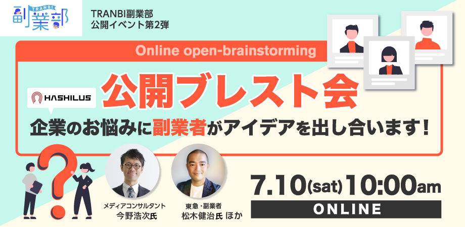 【TRANBI副業部】7/10(土)10時〜 公開ブレスト会開催のお知らせ