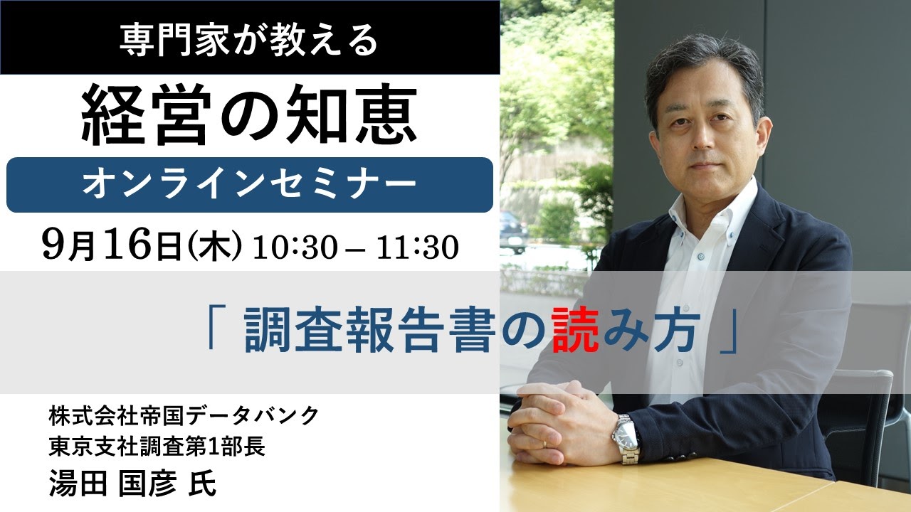 【専門家が教える経営の知恵#6】9/16(木)10:30〜 帝国データバンクによる「調査報告書の読み方」