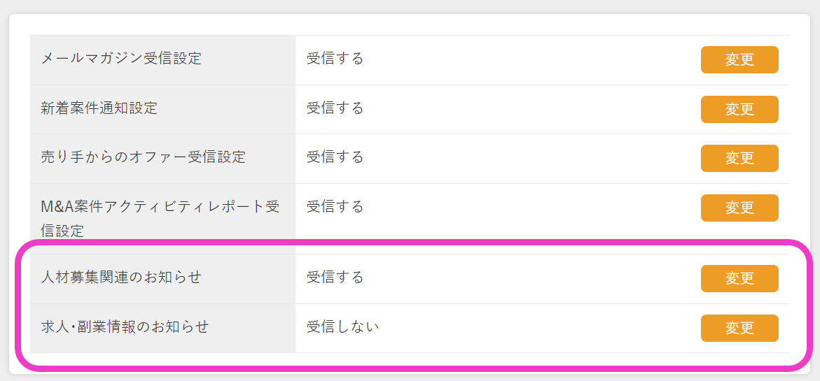 なお、人材関連のメール通知の初期設定は以下のようになっております。
