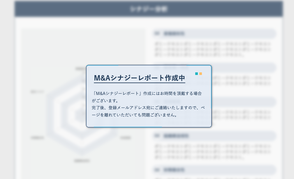買い手様が関心のある案件のAIシナジー分析レポートを参考にしていただくことで、M&Aの初期検討や、交渉の初期段階に考慮すべきポイントがわかり、M&Aの検討や交渉にかかる負担を軽減します。