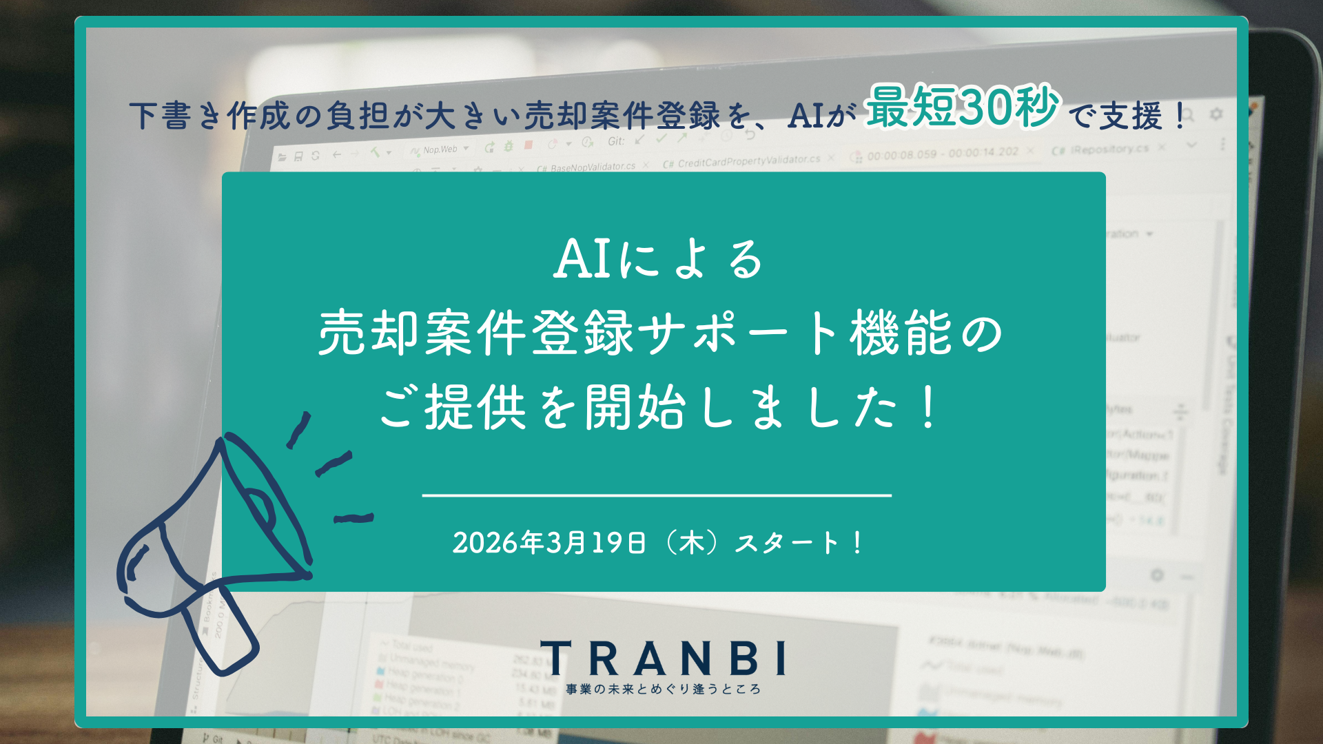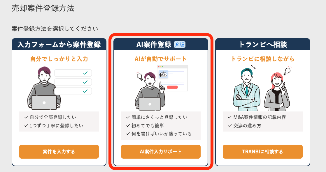 この度2026年3月19日(木)に、売却案件の登録をよりスムーズに行っていただけるよう、AIによる登録サポート機能(β版)を新たにリリースいたしました。