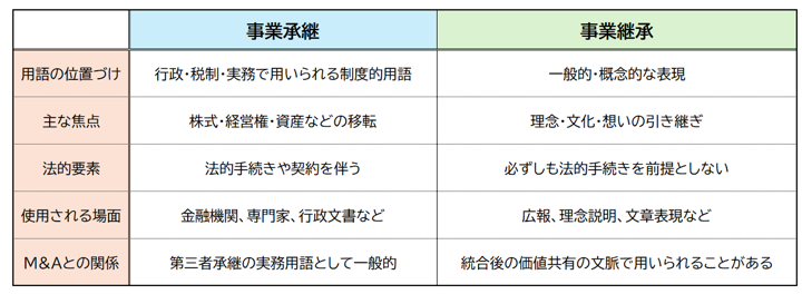 このように、「事業継承」は制度用語というよりも、文章表現として選ばれているケースが多いと整理できます。
