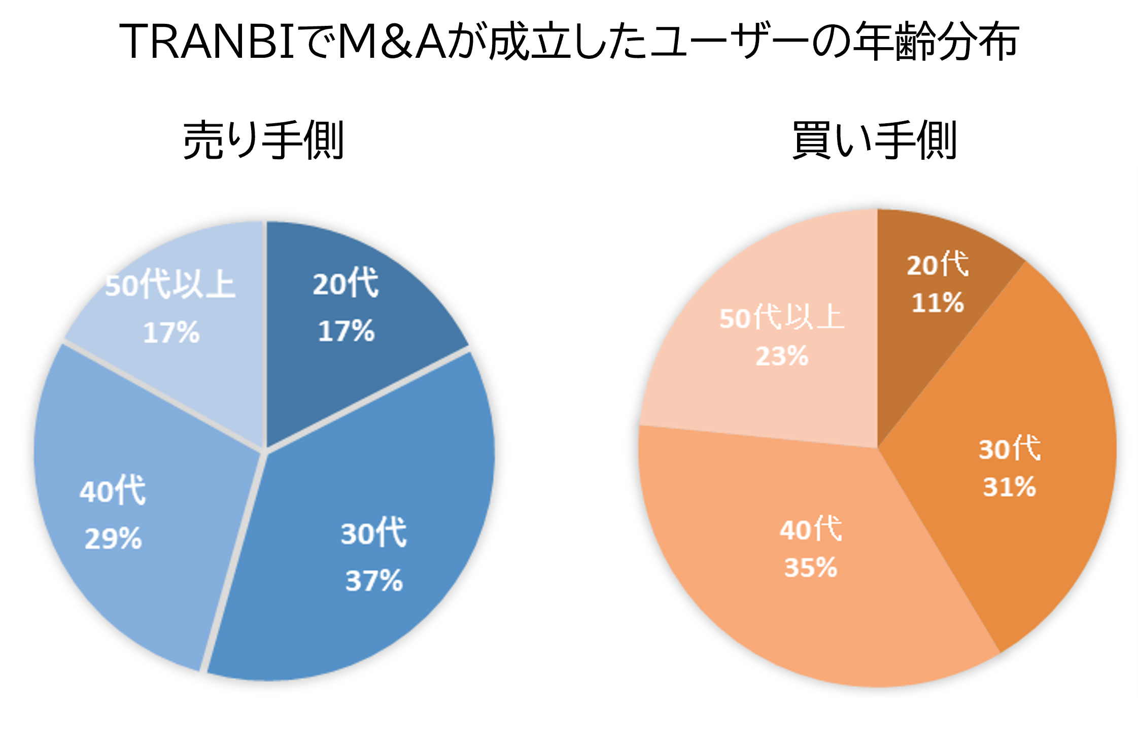 TRANBIでマッチングし、M&Aが成立したユーザーの年代分布は下図のようになっています。